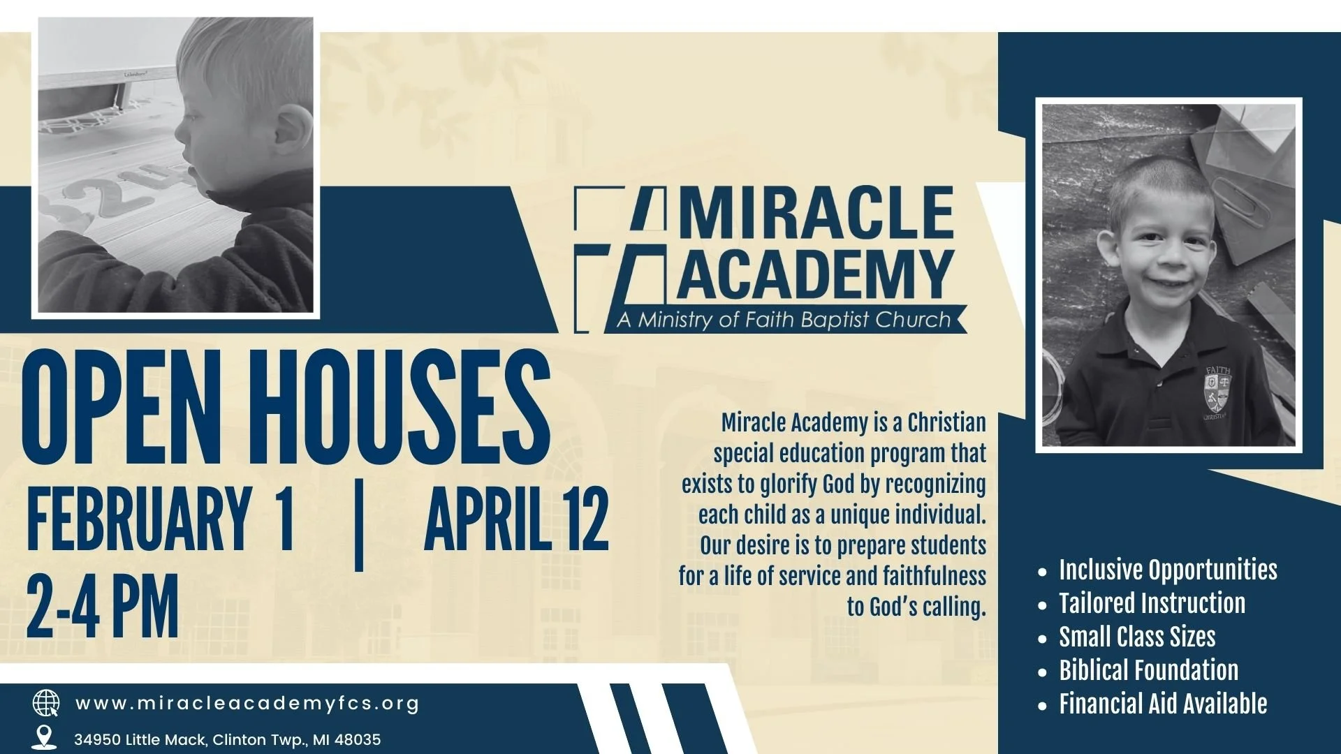 All families attending the Open House will enter through the Faith Christian School Main Entrance, and turn right to get to C Corridor where the classrooms are.